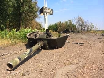 to Scen. 1, 2, 3, or 3b: Putin starts a nuclear war. The Ukrainians are close to winning, though the costs to the big Russian Separatist urban strongholds would be extreme. Though bad news on Sunday: New DPR leader Zakharchenko says 1200 Russian reinforcements arrived in Lugansk, trained for 4 months in Rostov, with 30 tanks, and 120 APCs (military blogger Tymchuk confirms that 40 "heavy armor" have entered)- Ukr MUST close the border to ever really win. remnants of rebel tank blasted by Ukrainians-